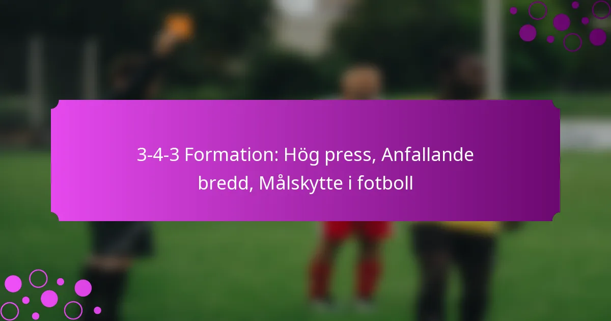 3-4-3-formationen är en dynamisk taktisk uppställning inom fotboll som består av tre försvarare, fyra mittfältare och tre anfallare. Denna formation är utformad för att förbättra hög press, maximera anfallsvidd och skapa många målchanser, vilket gör den till ett effektivt val för lag som strävar efter att kontrollera spelet och sätta press på sina motståndare.