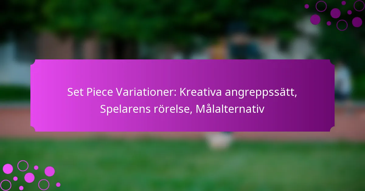Kreativa tillvägagångssätt för variationer av fasta situationer involverar unika mönster och spelarrörelser som ökar målchanserna. Genom att använda innovativa taktiker kan lag överraska motståndarna och utnyttja defensiva svagheter under frisparkar och hörnsituationer.
